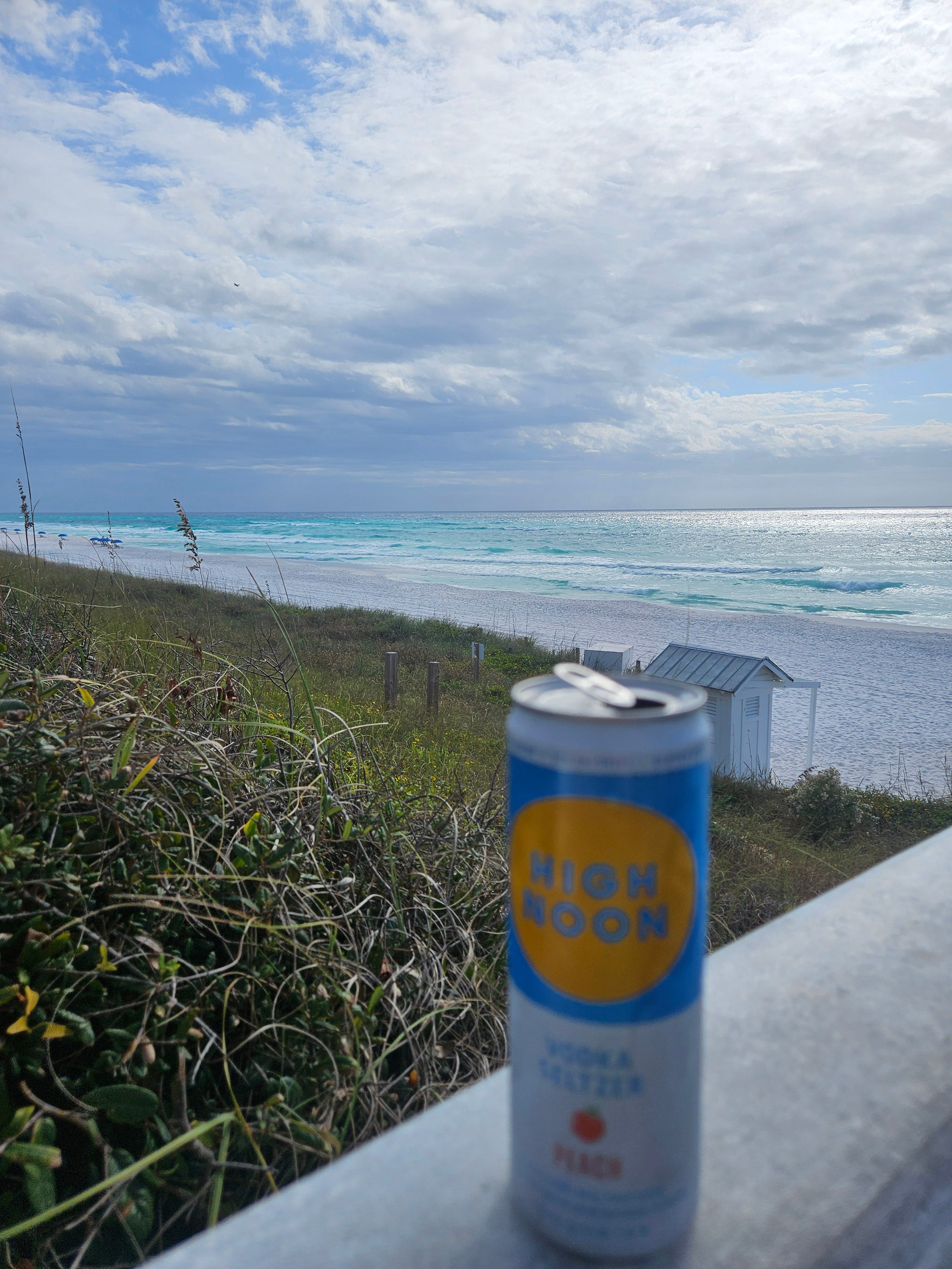 I stopped for a seltzer at a seaside bar and drank my high noon peach while looking at the water.