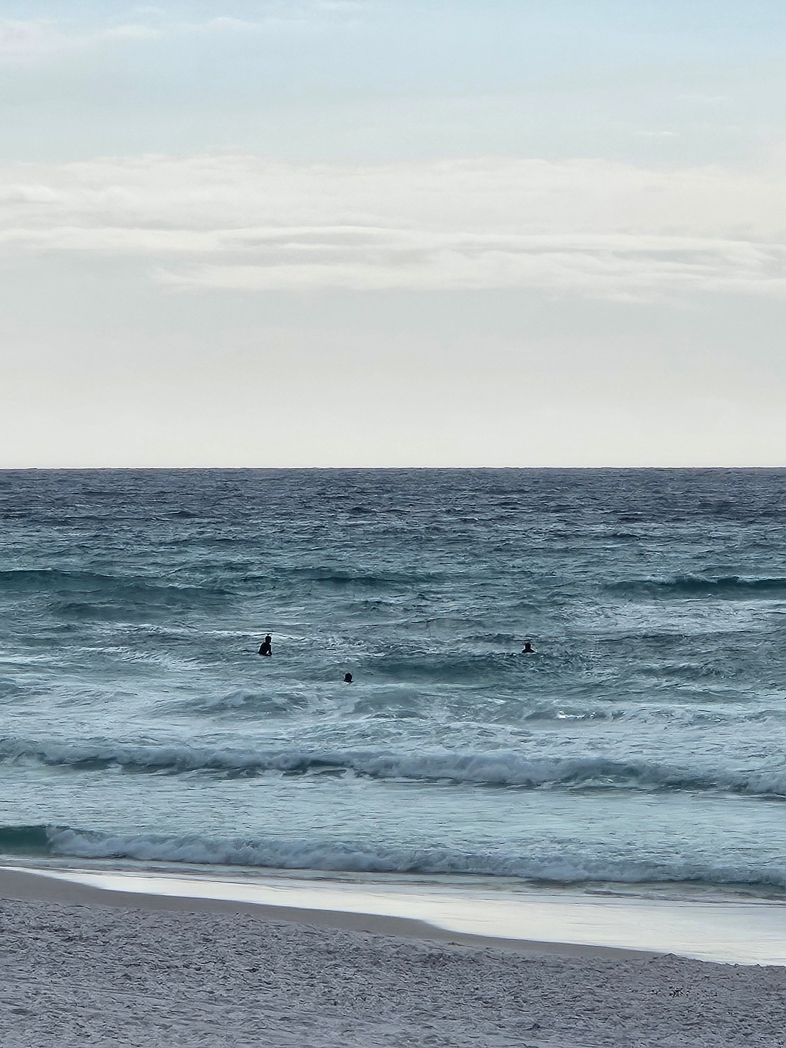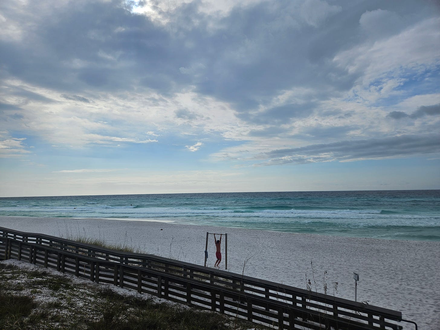 Not bad. 🥵 No complaints. There were surfers galore on surfboards riding the waves, which is something I have not seen on the Florida or Alabama coast until this visit. Apparently, 30A is also a place for surfing.