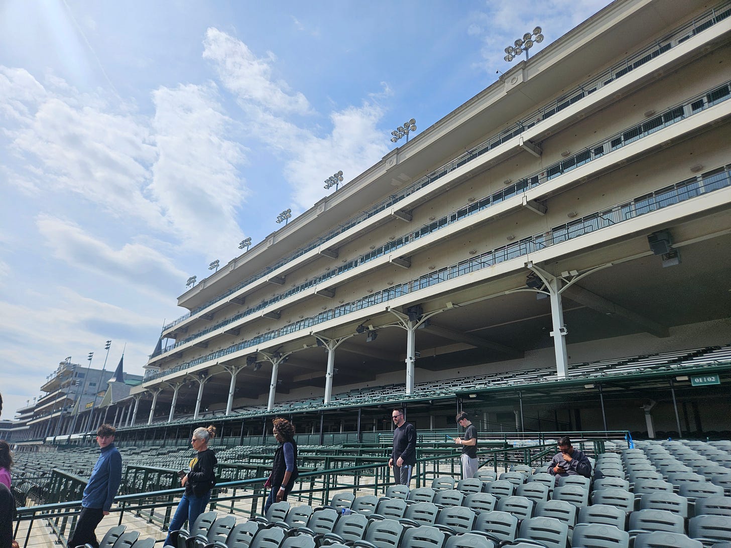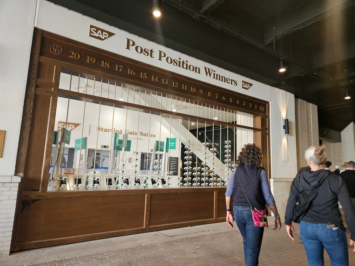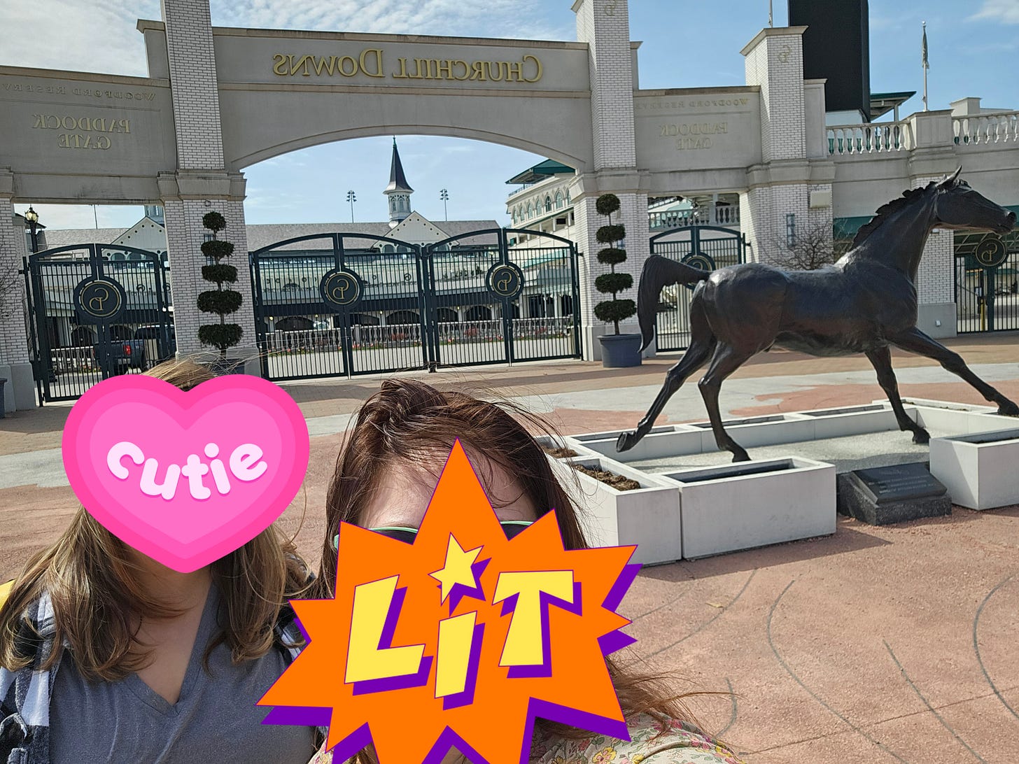 We did get a little tour of the track. We opted out of Millionaire’s row. I told Willow I would experience it firsthand one day. “You want your first time to be authentic”, she said. “Right”, I agreed playfully. The tour guide told us that there is a race just for the Phillies, but there have been Phillys that have participated and some that have won. It is just extremely rare. She said that instead of roses, they get a blanket of Lillies. “‘Lillies for the Phillies’ we like to say around here”. I thought for sure there would be a shirt or a sticker with that on it but the gift shop did not deliver. I did get a sticker that says “Talk Derby to me” and “Gettin’ lucky in Kentucky”.