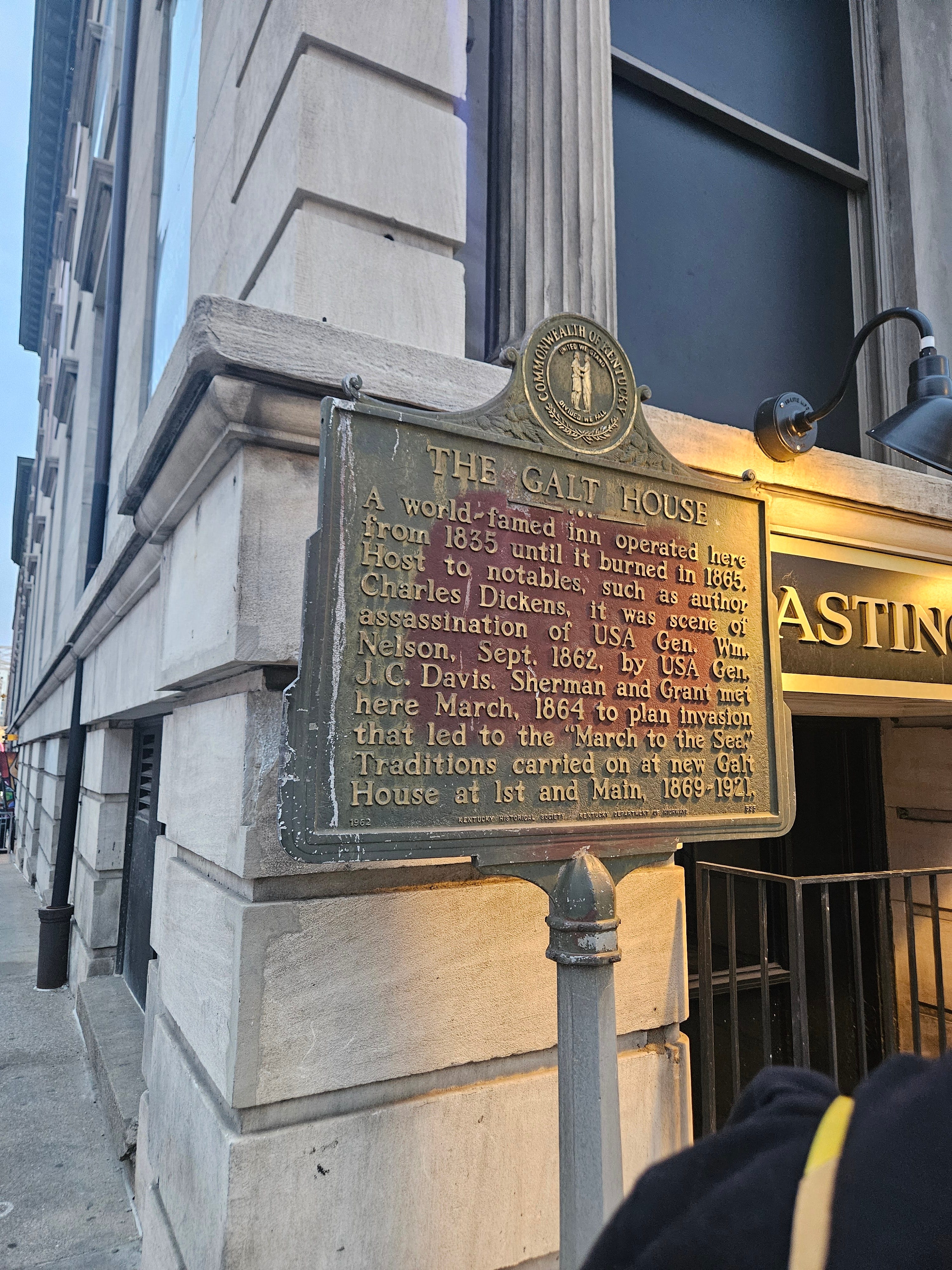 I wasn’t going to do that. I barely know any of these people, and it didn’t seem like they had any plans to hang out with us after. So I just made my way back down to the pub. I noticed signs that said that on the upper level of the building there were living and work lofts available. The building was called Whiskey Lofts. I immediately began to fantasize about owning a work/living space in Louisville where I could come and write on the weekends. I have several of these fantasy lofts/apartments all over the United States. Savannah, New Orleans, Asheville…etc. etc. This loft was located in the old Galt House. We happen to be staying nearby at the Galt House Hotel.