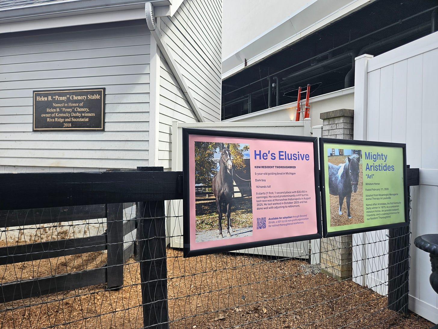 We did get to see the “museum stables” which houses a retired thoroughbred and his service miniature horse, Ari.