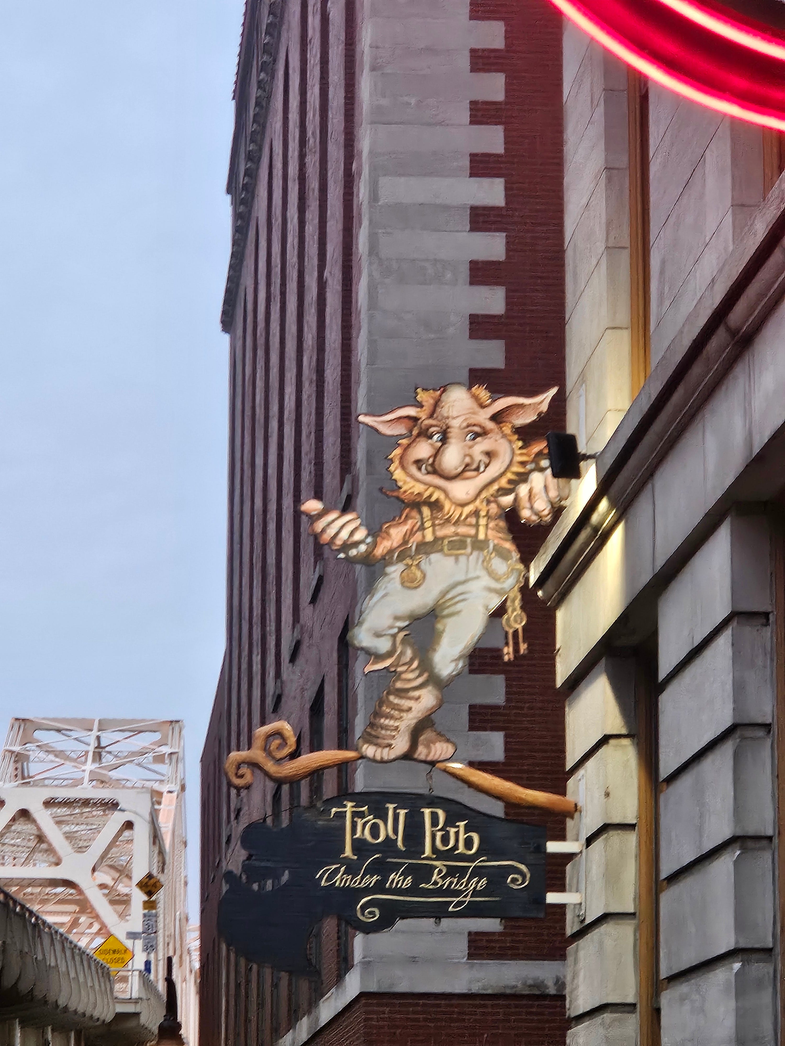 After dinner we walked to this place called “Troll Pub Under the Bridge” or I guess just The Troll Pub. We had seen it the day before and wanted to check it out. We even walked by it the day prior, to see what it was about and Max asked me to take his picture next to the troll.